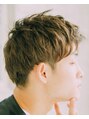 ナチュラルなメンズショート。 さりげなく2ブロックにしているので、全体に動を出してもボリュームが出過ぎずスタイリングしやすい!カラーでラフな印象にもなります。