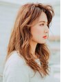 ロングの表面にレイヤーを入れて大きくゆるウェーブパーマをかけて動きの出やすいスタイルにしました。 顔まわりは長すぎるとボリュームが出にくいので、アゴラインから巻いて動きを出すと今っぽいスタイルになりますYO!