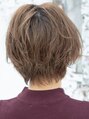 ショートボブレイヤーにふんわりと動きがでるようにパーマがかかっています。スタイリングしたときに無造作なふんわり感を作ることがきます。カラーは透明感があるアッシュベージュです。