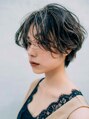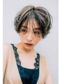 ラフな動きのあるショートにハイライトが入っています。ハイトーンのハイライトを表面に多く入れることで、動きが出にくいスタイルに動きと立体感をつけます。