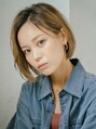 人気の切りっぱなしパッツンボブ。首が細く長く見える位置で自然に内に入るようにカットしました。カラーはハイトーンのベージュで根元はあえて地毛を生かし、グラデーションカラーのようにしました。