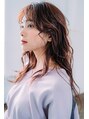 ロングヘアにパーマを加えたヘアスタイルです。前髪や後ろの髪に動きをつけることで、顔周りに空間を作り、印象を明るく華やかに見せています。