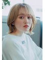 外跳ねが可愛いレイヤーボブ。顔周りはスッキリとレイヤーを入れているので、ショートのようなスッキリ感が出るようになっています。ブリーチ後、サンドベージュをオンカラー。カジュアルにもガーリーにもなりますYO!