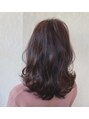 ダークトーンのほんのりラベンダーカラー。大きめのカールで波に巻くと可愛い。春らしくさりげない色味を取り入れてみてはいかがですか?【 藤枝/髪質改善/カラー】