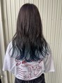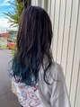 毛先をブリーチで抜いたところにマニキュアでブルーのカラーを入れてあります。【藤枝/藤枝駅/焼津/島田/髪質改善/オーガニックカラー/デザインカラー/ハイライト/インナーカラー/ヘッドスパ/トリートメント】