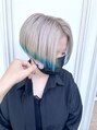 ホワイトシルバーとミズイロでクールな印象。【広島派手髪】【広島ハイトーンカラー】【広島バレイヤージュカラー】【広島ウルフカット】【広島白髪ぼかし】【広島ケアブリーチ】【広島美容室】【広島ヘアカラー】【広島インナーカラー】【広島髪質改善】