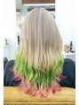 ライムグリーン×ピンクでポップに♪ 【広島派手髪】【広島ハイトーンカラー】【広島バレイヤージュカラー】【広島ウルフカット】【広島白髪ぼかし】【広島ケアブリーチ】【広島美容室】【広島ヘアカラー】【広島インナーカラー】【広島髪質改善】