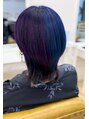 紫と青のツートンカラー。ウルフカットスタイル。【広島派手髪】【広島ハイトーンカラー】【広島バレイヤージュカラー】【広島ウルフカット】【広島白髪ぼかし】【広島ケアブリーチ】【広島美容室】【広島ヘアカラー】【広島インナーカラー】【広島髪質改善】