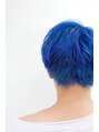 発色抜群のブルーを大胆に入れたショートボーイッシュスタイル。【パーマ/ボブ/レイヤー/メンズパーマ/Y2K/デザインカット/ブリーチ/ハイトーン/ダブルカラー/暖色/ブロンド/似合わせ/小倉/小倉駅】