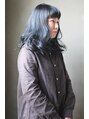 セミロングベースに毛先にランダムなブリーチを入れ、ディープブルーをオンカラー。少しアクセントをつけたナチュラルスタイル。【パーマ/ボブ/レイヤー/メンズパーマ/Y2K/デザインカット/ブリーチ/ハイトーン/ダブルカラー/ブロンド/似合わせ/小倉/小倉駅】