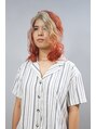ブリーチ後にサイドバックをカシスオレンジで前髪の一部だけにブロンドベージュでゾーンカラーを加えたデザインスタイルです【パーマ/ボブ/レイヤー/メンズパーマ/Y2K/デザインカット/ブリーチ/ハイトーン/ダブルカラー/暖色/ブロンド/似合わせ/小倉/小倉駅】
