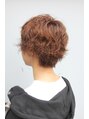襟足をタイトに締めて、ゆるいパーマでナチュラルな質感を出しています。カラーはソフトブリーチでトーンアップ後、スモーキーブラウンをオンカラー。