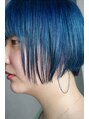 ミニボブベースにブリーチ2回後、ライトブルーをオンカラー。【パーマ/ボブ/レイヤー/メンズパーマ/Y2K/デザインカット/ブリーチ/ハイトーン/ダブルカラー/暖色/ブロンド/似合わせ/小倉/小倉駅】
