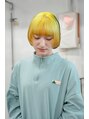 マレットマッシュボブにカット。オリジナルのケア剤をしっかり使用しながら2ブリーチでベースを作り、イエローとブラックの大胆なゾーンデザインをしています。【パーマ/ボブ/レイヤー/Y2K/デザインカット/ブリーチ/ハイトーン/暖色/似合わせ/小倉/小倉駅】