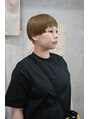 マッシュショートにベースカット。カラーはケア剤をたっぷりと使いながらブリーチ1回でリタッチ。根元をホワイトに毛先はブラウンベージュで2トーンデザイン。ボブ/レイヤー/Y2K/デザインカット/ブリーチ/ハイトーン/ダブルカラー/暖色/似合わせ/小倉