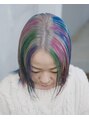 ホワイトベースのカラフルミックスデザイン。パーマ/ボブ/レイヤー/メンズパーマ/Y2K/デザインカット/ブリーチ/ハイトーン/ダブルカラー/暖色/ブロンド/似合わせ/小倉/小倉駅