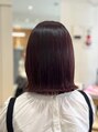 - 切りっぱなしボブに深みレッドを