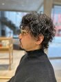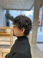 ゆるめのカールで立体感を出したメンズパーマスタイル。無造作に動く毛束がこなれた雰囲気を演出しクールな印象に。サイドと襟足はすっきり整え、トップは程よくボリュームを残してバランス良く仕上げたデザイン。スタイリングも簡単で再現性の高いスタイル。