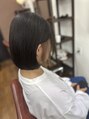 カット+イヤリングカラーメニューで施術ミニボブ+イヤリングカラーをいれて耳かけした時に可愛さプラスですベースを5~6トーンのグレー、イヤリングカラーをラベンダー系で染めました