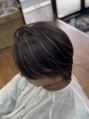 コントラストハイライトカラー。ハイライトのスジ感が目立つように、ハイライト部分はブリーチでしっかり抜き、その他のベースはハイライトを目立たせるために、暗髪にしたコントラストハイライトスタイルです。