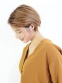 センターパートで分け、全体をタイトにまとめたモードなボブスタイル。えりあしのタイトさが、ぐっと大人の印象に。セミウェットなスタイリング剤やヘアオイルで、透明感をプラスして【熊本光の森】