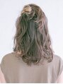 ハチ上を結び、お団子にまとめたハーフアップアレンジ。ラフに崩してオシャレ間をプラス。後れ毛もしっかり残して、ランダムに巻き、オイルかバームでスタイリング。夏の休日をイメージしたスタイルです。【熊本光の森】