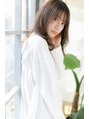 表面に軽くレイヤーを入れてあるので毛先の動きが出やすくなってます!ゆるーいカールで抜け感を低温デジタルパーマで出してます。アイラインギリギリの前髪でかわいさをプラス☆カラーはアッシュブラウンで柔らかさを演出☆