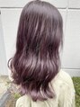 数ヶ月前にブリーチ履歴があり明るくなった髪に濃いめのラベンダーカラーを。ラベンダーカラーはもちがよく、色がぬけていく過程もキレイなので色がぬけやすい方や黄色っぽくなりやすい方にとてもオススメです