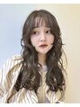 ロングパーマ / かきあげバング / グレージュカラー