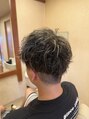 細めのハイライトを全体に散らした、立体感のあるメンズパーマスタイル。髪質やダメージに合わせて薬剤を選定し、無理のない施術で仕上げています。「少し雰囲気を変えたい」「重たく見せたくない」方におすすめ。