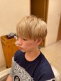 明るめでも清潔感のある印象に仕上がる「ブロンドマッシュ」。ブリーチを活かしたハイトーンカラーで、やわらかく抜け感のあるスタイルに。髪質やダメージレベルを見極めて薬剤を選定しているので、初めてのブリーチでも安心してご相談ください。