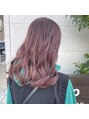 イルミナカラーのピンクカラー。黄色っぽくなりやすい方なので黄色を抑えて色落ちしても抜けた感じがでにくいようにました。※ベースの明るさは必要です。