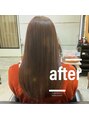毛先にパーマ履歴とブリーチ履歴がありました。毛髪はダメージ毛でカラーに酸熱トリートメントを混ぜて施術しました。中間処理でケラチン補給をしながら仕上げてシャンプーしAujuaトリートメントもやっています。仕上がりはとても艶やかに仕上がりました。