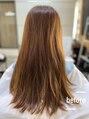 サイドレイヤーで顔周りに流れを作り巻きやすく仕上げました。カラーはオレンジ色を消すためにブルー系のカラーを使っています。仕上げはコテで巻き髪スタイルとても可愛い感じに仕上がりました。