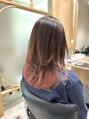 ロングレイヤーにグラデーションカラーでピンクに。ケアブリーチ、トリートメントなどダメージレスにこだわっています。カラー後の頭皮の乾燥をケアするクイックヘッドスパもおすすめです。