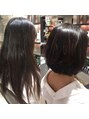 髪質改善ストレートトリートメント。従来の縮毛矯正とは違い、酸性の薬剤で髪を膨らませて歪んでいる毛髪を綺麗な円形にします。自然なストレートヘアーコテ、ブロー使用ok髪を溶かさないので痛みが少ないブリーチ毛もok