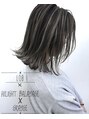 外国人風ロブ ハイライトバレイヤージュグラデ グレージュ