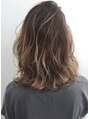 外国人風ウェービーロブ ハイライトバレイヤージュ グレージュ
