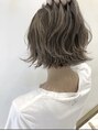 外国人風パーマボブ ハイライト グレージュ 外ハネ