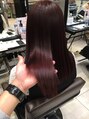 カットは毛先を揃え痛まないカット。ケアを中心にカラー予防のトリートメント→チェリーレッドカラー→生ケラチンで髪の内側をしっかりさせます→キューティクル保護のトリートメント→髪全体を保湿するトリートメントで髪のダメージ部分を細かくケア!