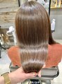 少しクセが気になるけど、透明感があるカラーがしたい人に向けた提案他店とは違うストレートヘア+透明感カラーを手に入れられます。縮毛矯正ではなく、ツヤツヤでふわっと自然なストレートヘアになれる薬剤と技術です。髪の状態によってブリーチが必要です。