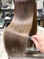 少しクセが気になるけどブリーチが必要な透明感カラーがしたい人に向けた提案。他店とは違うストレートヘア+透明感カラーが手に入り、縮毛矯正ではなく、ツヤツヤでふわっと自然なストレートヘアになれる独自理論のケラチントリートメント。担当 高沼達也