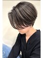 グレージュハイライト前下がりショート白髪ぼかし n3.22