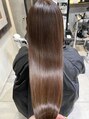 少しクセが気になるけど、透明感があるカラーがしたい人に向けた提案他店とは違うストレートヘア+透明感カラーを手に入れられます。縮毛矯正ではなく、ツヤツヤでふわっと自然なストレートヘアになれる薬剤と技術です。髪の状態によってブリーチが必要です。