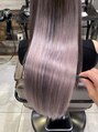 少しクセが気になるけどブリーチが必要な透明感カラーがしたい人に向けた提案。他店とは違うストレートヘア+透明感カラーが手に入り、縮毛矯正ではなく、ツヤツヤでふわっと自然なストレートヘアになれる独自理論のケラチントリートメント。担当 高沼達也