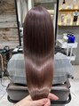 少しクセが気になるけど、透明感があるカラーがしたい人に向けた提案他店とは違うストレートヘア+透明感カラーを手に入れられます。縮毛矯正ではなく、ツヤツヤでふわっと自然なストレートヘアになれる薬剤と技術です。髪の状態によってブリーチが必要です。