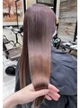 少しクセが気になるけど、透明感があるカラーがしたい人に向けた提案他店とは違うストレートヘア+透明感カラーを手に入れられます。縮毛矯正ではなく、ツヤツヤでふわっと自然なストレートヘアになれる薬剤と技術です。髪の状態によってブリーチが必要です。