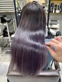 少しクセが気になるけどブリーチが必要な透明感カラーがしたい人に向けた提案。他店とは違うストレートヘア+透明感カラーが手に入り、縮毛矯正ではなく、ツヤツヤでふわっと自然なストレートヘアになれる独自理論のケラチントリートメント。担当 高沼