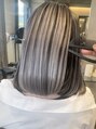 少しクセが気になるけどブリーチが必要な透明感カラーがしたい人に向けた提案。他店とは違うストレートヘア+透明感カラーが手に入り、縮毛矯正ではなく、ツヤツヤでふわっと自然なストレートヘアになれる独自理論のケラチントリートメント。担当 高沼