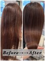クセが気になるけど、透明感があるカラーがしたい人に向け!他店とは違うストレートヘア+透明感カラーを手に入れたい方にオススメです。縮毛矯正ではなく、ツヤツヤでふわっと自然なストレートヘアになれる薬剤と技術です。